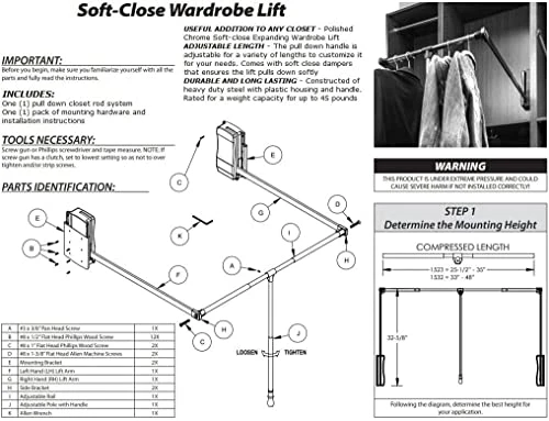 - INCLUDES: One (1) pull down closet rod system, One (1) pack of mounting hardware. Instructions and mounting hardware included