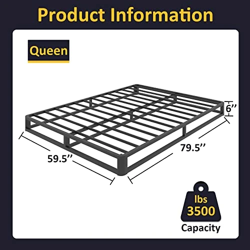 - 【Solid and Durable】The 6 inch queen bed frame is made of steel slat structure, stable and durable, no squeak noise free, can support 3500 pounds. The minimalist design can be easily matched with modern decor.