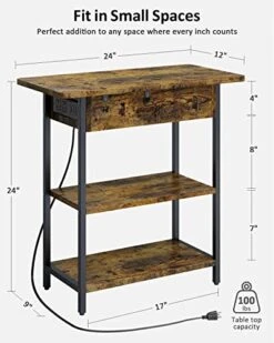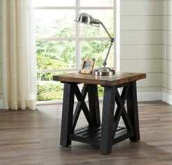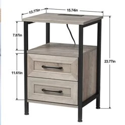 Light Walnut/White Side End Table Nighstand With Drawer 22.5″ H
