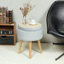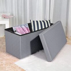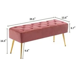 24KF Linen Upholstered Tufted Bench With Solid Wood Leg,Ottoman With Padded Seat-Dark Gray