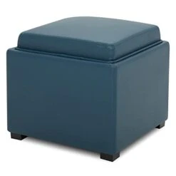 Amazon Brand – Rivet Tompkins Contemporary Foam-Padded Leather Ottoman, 24″W, Cognac