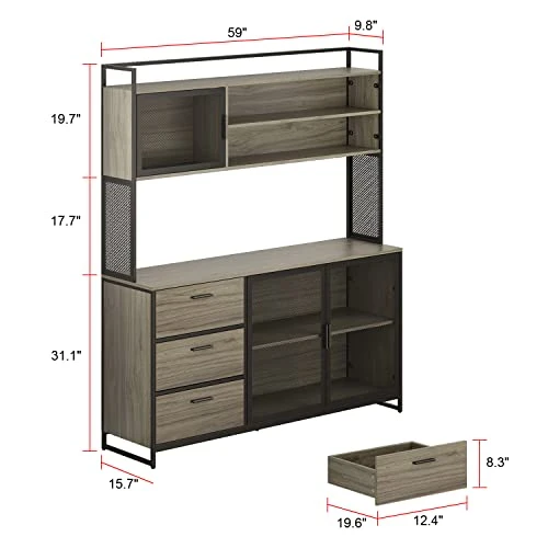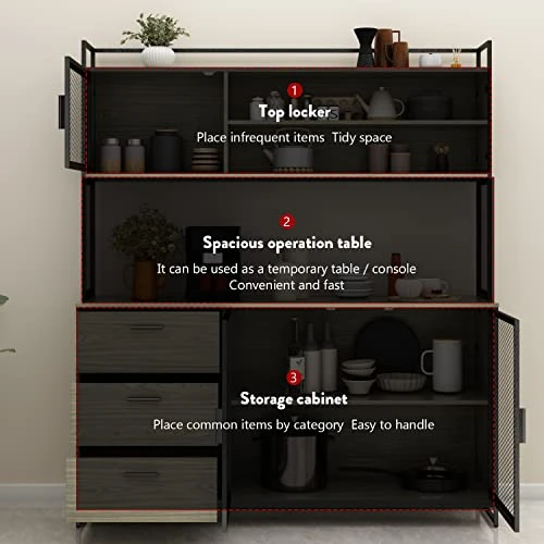 - 【Sufficient Storage Space】This large size kitchen hutch offers open surface more than sufficient to place you cooking machiens,like microwave, toaster, blender or coffee makers. Shelves behind glass doors are roomy for tableware, dinnerware, glassware or anything else you like