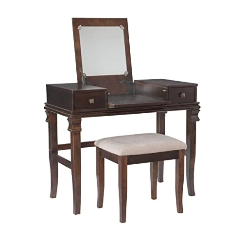 - Convenient flip top mirror with a safety stay hinge allows access to open storage beneath