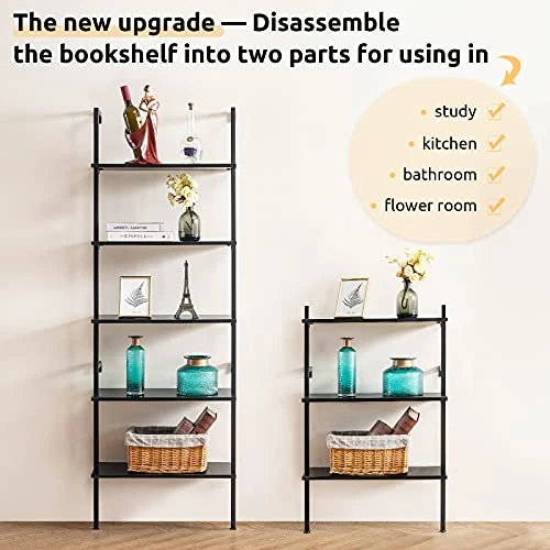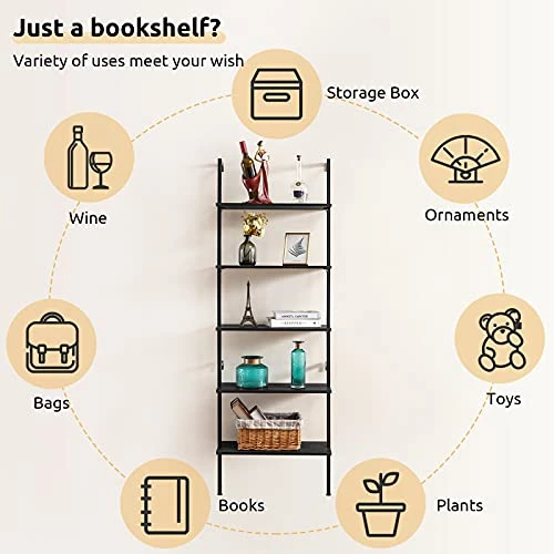 - Bookshelf – 5-tier ladder shelf uses a wall-mounted design, which is great for storage and display for home office and bathroom.