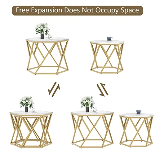 - 🍵【Modern and Elegant】The white hexagonal desktop with a unique faux marble finish, combined with a special geometric gold metal frame, creates a contemporary and elegant appearance, which will bring charm to your living room and easily attracts your guests’ attention. This coffee table set of 2 brings a minimalist and cozy feel to your leisure space. They can perfectly blend into any home style.