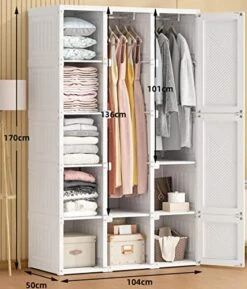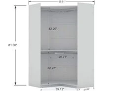 Rockefeller Ultra Modern 2 Door Open Corner Bedroom Closet With Hanging Rods, 65.91″, White