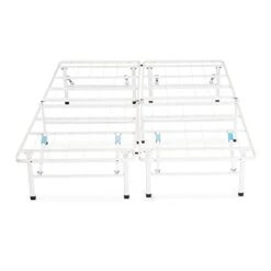 Foldable Metal Platform Bed Frame With Tool Free Setup, 14 Inches High, Queen, White
