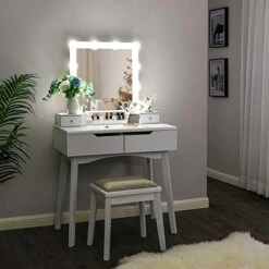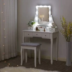 – Princess & Frog Kids Vanity Table And Stool Set , 1 Drawer, Gift For Kids, White Pink, Crown