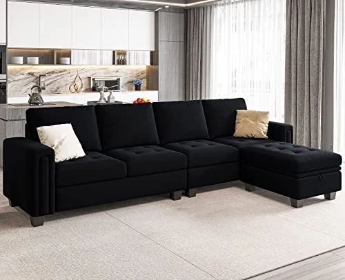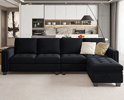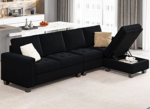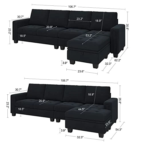 - SUITABLE DIMENSIONS: Overall dimensions of L shaped sectional couch is 106.7″(W) x 62.2″(D) x 35.8″(H). Dimensions of single storage ottoman is 23.6″(W) x 31.5″(D) x18.5″(H) . Space saving and durable.Belffin has an excellent after-sale service team, please feel free to contact us if you have any questions. We are glad to serve you.