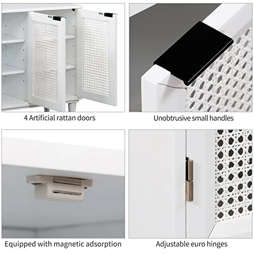 - 【Ample Storage Space】- This 4 door cabinet is designed into different functional spaces to meet different requirements of users. Two big cabinet with two doors provide ample additional storage space, built-in adjustable shelves that can be adjusted to three heights as well or users can remove it if need. This accent cabinet is aesthetic enough for the restaurant, bar or living room.