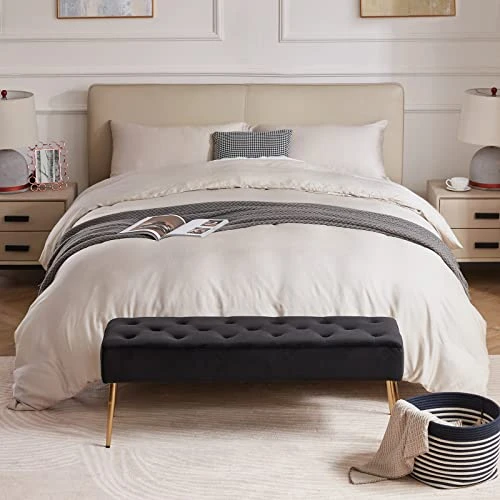 - 🐰 Comfortable Sitting: Generously padded with high-density sponge, the bedroom bench is comfortable and practical as well. Velvet cushioning provides a soft but supportive seat. Put your feet up on a velvet cushion and descend into pure relaxation and comfort.