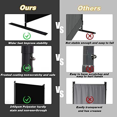 - 【UPGRADES OF MATERIALS】The panel of wall divider are made of watertight, non-see-through and tear-resistant high density 240g polyethylene fabric . The metal frame of the room divider wall is made of strong iron and powder coating, which increases its rust and wear resistance, and also extends his service life. At the same time widened support feet also increase its stability.