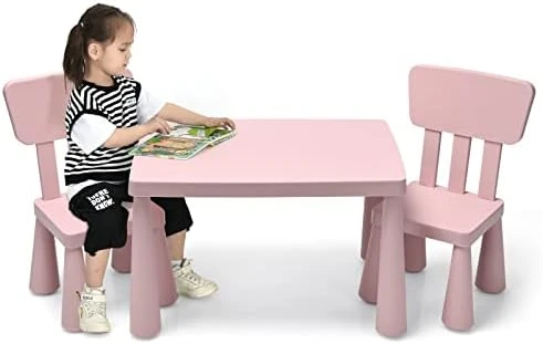 - 🎁【Cute Appearance & Multiple Uses:】The bright color design makes this kids table and chairs set look great in the bedroom, playroom, daycares and more. Moreover, featuring 1 large rectangular desk and 2 cozy chairs, this kids furniture set offers a cozy place for your children to enjoy reading, writing, playing, drawing, learning, etc.