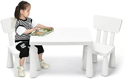 - 🎁【Round Corners & Lightweight Design:】Both the table and chairs are designed with round corners and smooth edges without burrs to protect kids’ delicate skin from scratches. What’s more, this lightweight plastic table and chairs set can be easily moved by kids so that they can find the most satisfactory location.