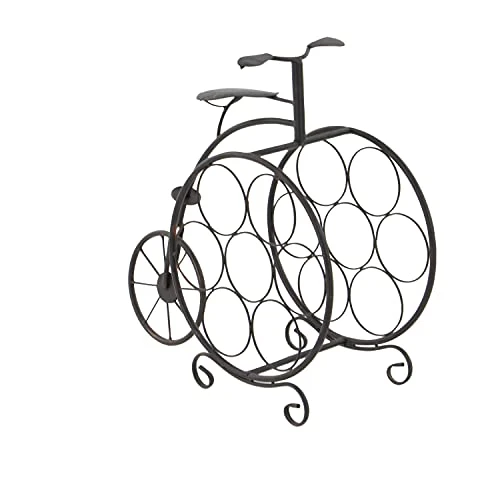 - FEATURES ROUND WINE RACK: Holds 7 wine bottles conveniently in an adorable penny farthing bicycle equipped with feet stand and handle bars