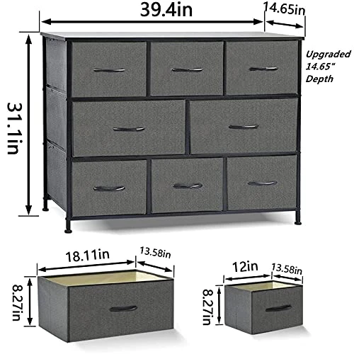 - FULL HOME SOLUTION: Drawer of clothes easily adapts to various living spaces like living room, bedroom, hallway, entrance, closet and nursery, etc. 8-drawer fabric dresser can be used in the bedroom as storage cube dresser or living room as tv stand dresser.