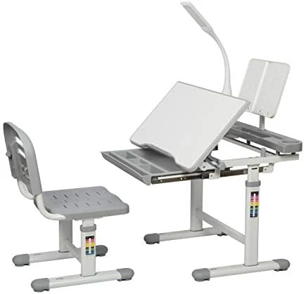- 【Kids Desk/Lamp】A free lamp is included in our kids functional desk and chair set, with 3 levels of brightness, avoid unhealthy slouching. How to adjust the lamp: You simply push the power button repeatedly to brighten the lamp and then hold down to turn off.