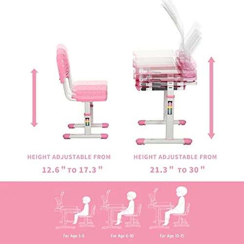 - 【Large Tilted Desktop】 The desktop of our children desk can be tilted up to 45 ° for an optimal angle for writing, reading, and drawing. Prevents slouching and promotes healthy posture. Rubber safety stops to prevent pinching. Gas spring lifting design, no worry about pressing hands.
