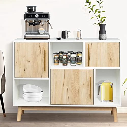 - 【Buffet Cabinet with Storage with Wide Applicability】This coffee bar cabinet with doors for storing private items. The sideboard buffet cabinet with storage is suitable for different scenes. You can put a buffet table cabinet in the living room, hallway, and entryway as a floor cabinet. Or as dresser storage in the bedroom, living room, nursery, bathroom, etc.
