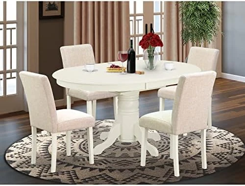 - 5-piece round dinette set to give a stylish look. 4 gorgeous parsons dining room chairs and a great dinette table to improve the elegance of your dining area with their awesome style. You can have breakfast, lunch, or dinner with your friends or family on an amazing wooden dining table set.