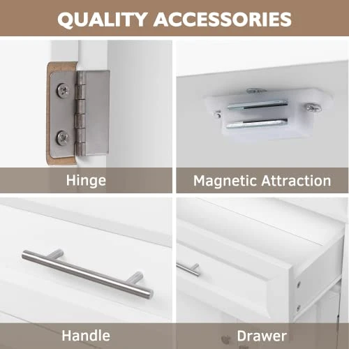 - [ AMPLE STORAGE ] Cabinets with two door and a central drawer can create more storage space in your kitchen storage, put your overflowing items in there, it’s done the job well.