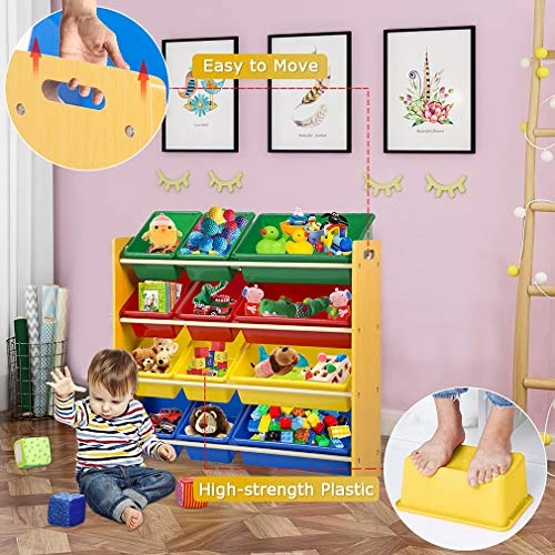 - ✔【SUFFICIENT STORAGE SPACE】:The toy storage have 12 toy storage bins , great for storing toys in a place, such as balls, toy cars, building blocks and others. The kid’s storage organizer have larger apace and helps the children to develop a nice habit. Toy organizer with bins kids storage bins toy organizers and storage.