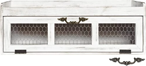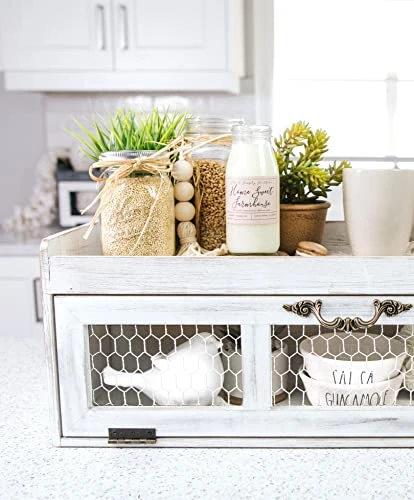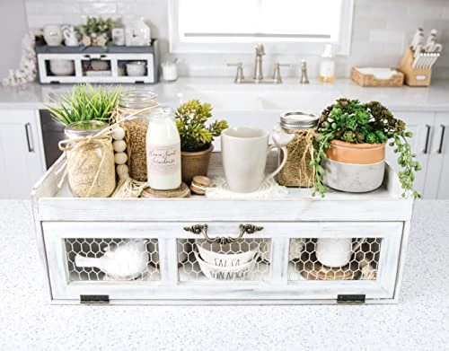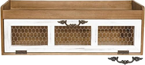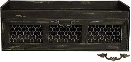 - DESIGNED TO LAST – This counter shelf is built from solid wood and sturdy metal hardware with a unique vintage look. The premium quality chicken wire door offers secure storage with a magnetic latch