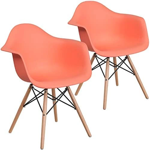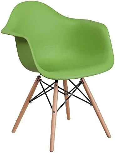 - Polypropylene molded structure, curved arms, wooden legs with bracing