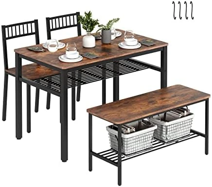 - Ample Extra Storage & Space Saving – Dining table set for 4 has designed storage rack for both table and bench to enlarge your home spaces.Due to its compact size,both 2 chair and bench can be easily tucked under the dining table without taking up too much space,which is an ideal choice for small living space dining areas.