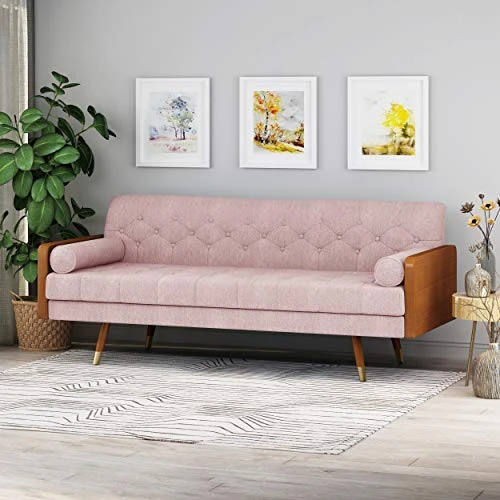 - GOLD TIPPED RUBBERWOOD LEGS: These iconic splayed legs are finished with gold tips, providing the final touch to this midcentury modern sofa. Made from rubberwood, our environmentally-friendly wood not only offers plenty of durability, but it also gives this piece a beautiful natural-grain look. Combined with a gorgeous finish, this wood will truly stand out in any room.