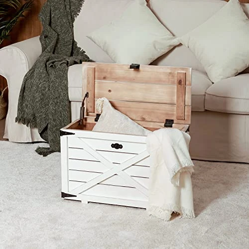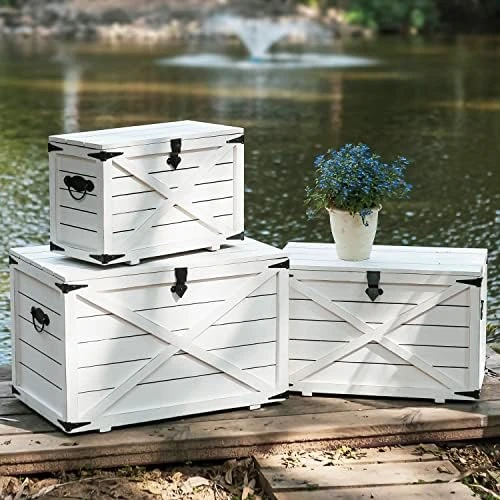 - 【FARMHOUSE STYLE】This set of 3 wooden trunks features a stylish farmhouse design that is perfect for adding a touch of rustic charm to any room.
