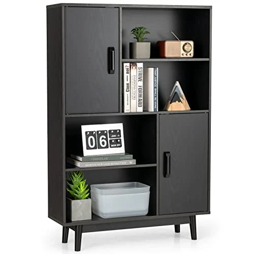 - Bring into Good Style: Our floor cabinet sets up doors and shelves in an irregular yet harmonious way to bring your interior unique furniture. This side storage cabinet with rubber wood legs will seamlessly blend into your living room, bedroom, or study, and complement well with existing decorations.
