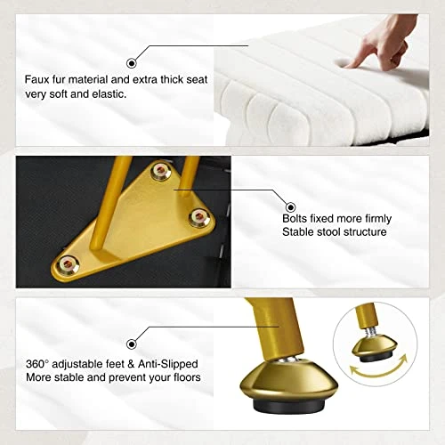 - 【Metal Legs and Non-slip 360 ° Adjustable Foot Pads】The sturdy metal legs can support up to 284lbs, and the golden appearance makes the stool more aesthetic. We have added Non-slip 360 ° adjustable foot pads to make the stool more stable and protect your floor.