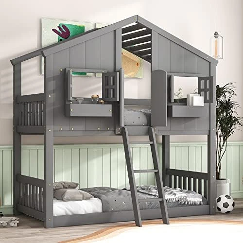 - 【Safety and Quality Guaranteed】 This low bunk bed frame is crafted mainly from premium pine wood, make the bed is firm and does not shake. that loft bed includes full-length guardrails, an integrated inclined ladder, and secured wood slats to ensure that you or your child will sleep in complete security and stability
