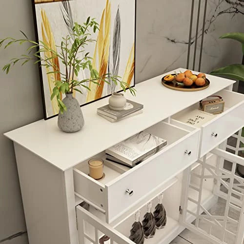 - 【Sturdy Frame】The buffet cabinet is made of high-quality MDF wood which ensures stability and durability. It’s also s also resistant against water and scratches, easily maintain with damp cloth. Consist with durable metal accessories for long term use