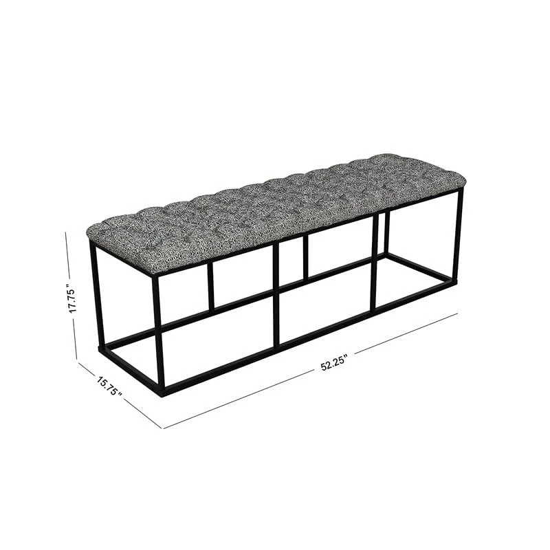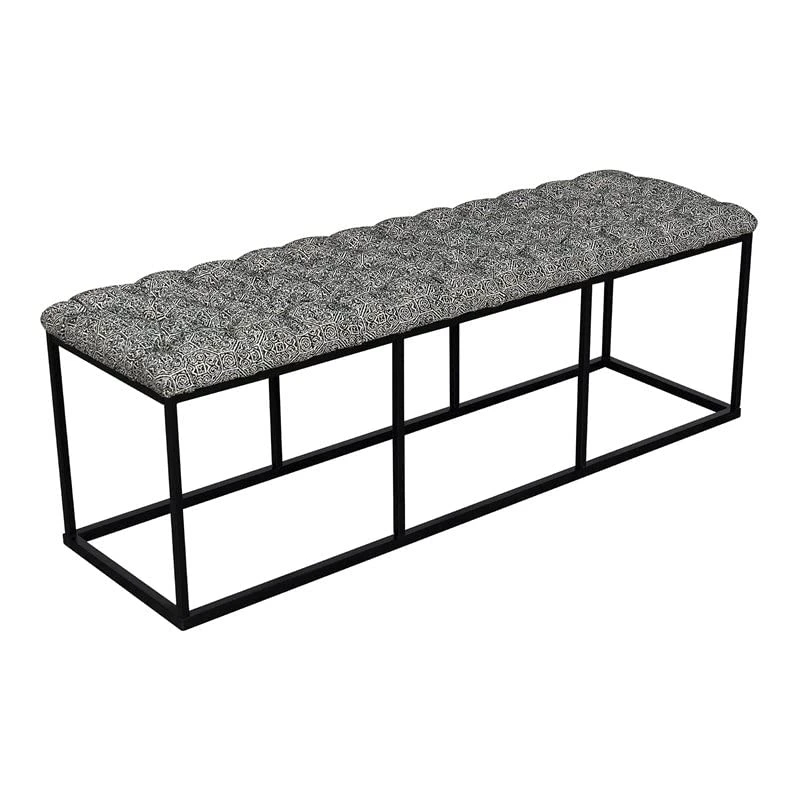 - OTTOMAN BENCH: Featuring a Global Print tufted top contrasts well with the sleek black metal styling of the base | Our decorative industrial bench is often used as an coffee table ottoman or for extra seating and storage in your living room