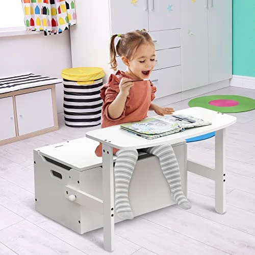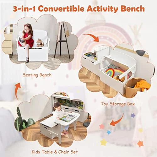 - 【Easy to Assemble & Clean】With detailed instructions and accessories, this wooden kids storage bench is quite easy to assemble.And this kids wooden table and chair set will be the best study or activity center for kids 3-7 years old to socialize, entertain, and explore.