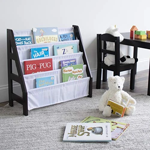 - Four deep fabric storage pockets stow reading books, Board books, coloring books and magazines of all shapes and sizes