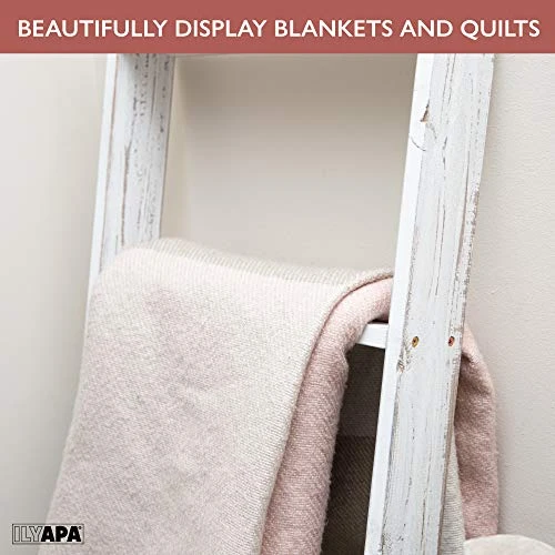 - MADE WITH REAL WOOD – Ilyapa’s ladder for blankets is beautifully crafted from rustic weathered wood for an elegant modern farmhouse look.