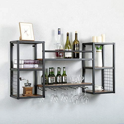 - 【Integrated Wine Rack】:Multi-layer shelf design with 5 stem glass holder gives you plenty of room to store wine, wine glasses and other accessories.