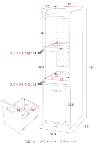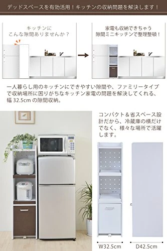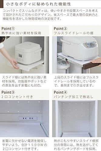 - Total 1,500 W with 2 outlets / Cord length 76.8 inches (194 cm) / 1 caster wheel; Compact kitchen rack for kitchen gaps A slim yet roomy gap rack for storage ; Sliding shelves make it easy to access your items A rack that can be used as a gap storage for living rooms other than the kitchen ; Available in a clean white color and a modern dark brown that creates a calm space