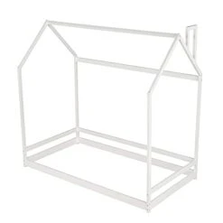 SFGJ House Bed Wood Bed With Roof For Kids, Teens, Girls, Boys No Box Spring Needed (White, Twin)