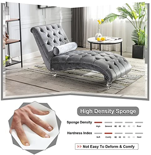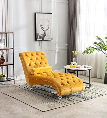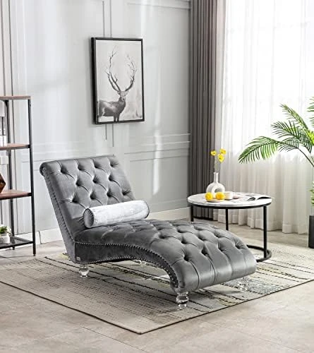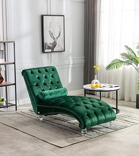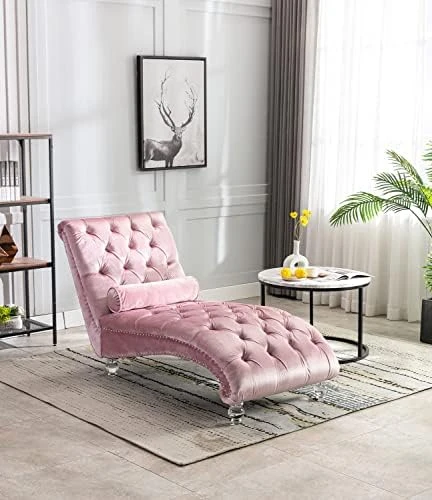 - [Soft Velvet Fabric] – The fabric of our chaise lounge is crafted from soft velvet, so there is no need to worry about pilling. The overall appearance adopts a special tufted button design, providing comfort while adding a sense of style.