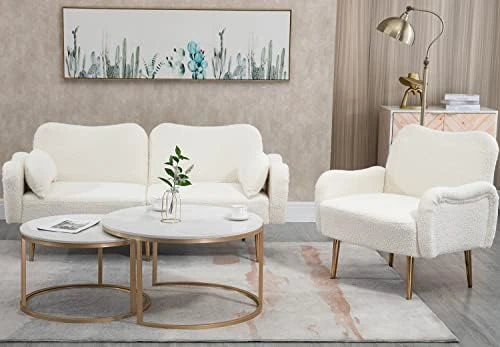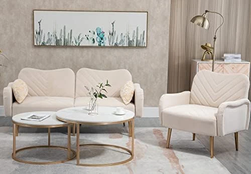- 【Appearance Design】The backrest and armrests of the chair are designed with an M shape like an arch, which looks particularly elegant,The combination of smooth lines and rose gold tapered metal legs adds modern elegance to the chair. The V-shaped lines of the cushions and backrest are simple and style, adding more character to your living room.