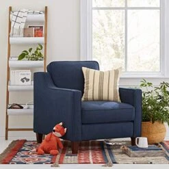 Amazon Brand – Stone & Beam Blaine Modern Upholstered Living Room Accent Chair, 32.3″W, Navy Blue