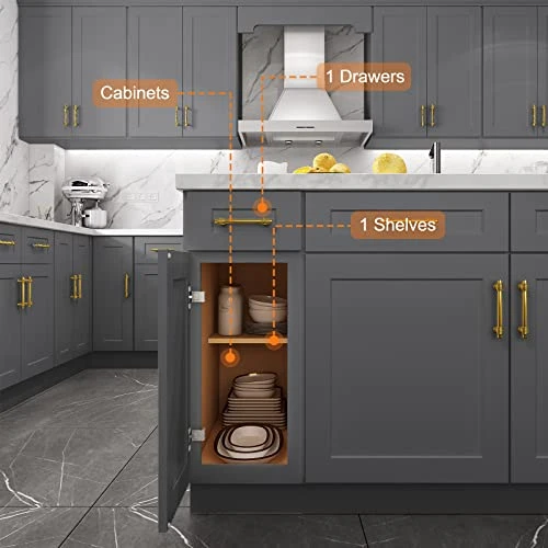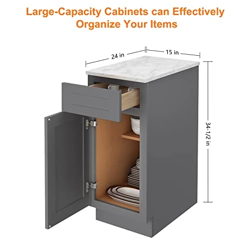 - Ample and powerful storage space: Our kitchen base cabinets have large drawers that provide ample storage space for a variety of items, so you can say goodbye to cluttered and unorganized space. The shelves can be adjusted to fit your needs.