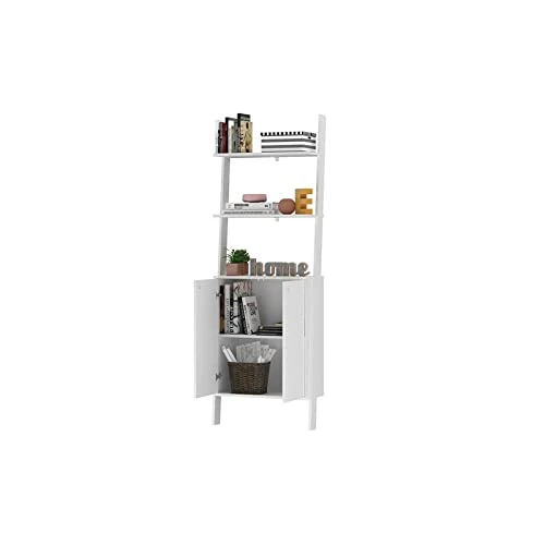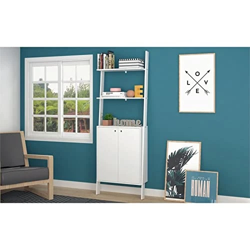 - Modern Wall-Mounted Ladder Design with a Spacious Two-Door Cabinet and Two Floating Shelves that Looks Elegant and Saves Space. Installation Hardware Included.