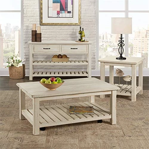 - Detailed Antique White Finish features both radial and Band saw rough-hewn saw marks