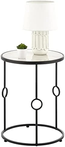 - COMPACT: A beautifully simple table compact enough to fit small or tight spaces; This versatile accent table adds a touch of style to your decor and tucks neatly into smaller spaces, or works great as a side table in any space; The tabletop is the perfect display area for favorite photos, plants, lamps, and other decorative accessories, or just for setting down a cup of coffee or tea; This handsome table is an ideal accent piece for houses, apartments, condos, college dorm rooms, or cabins