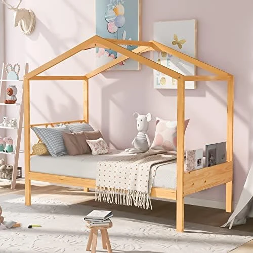 - Safe Twin Bed for Toddler and Young Kids: this twin bed is floor high design,the perfect transition for your little one from their crib bed to this styled house bed. The theme of the house encourages fun play and reading in bed.